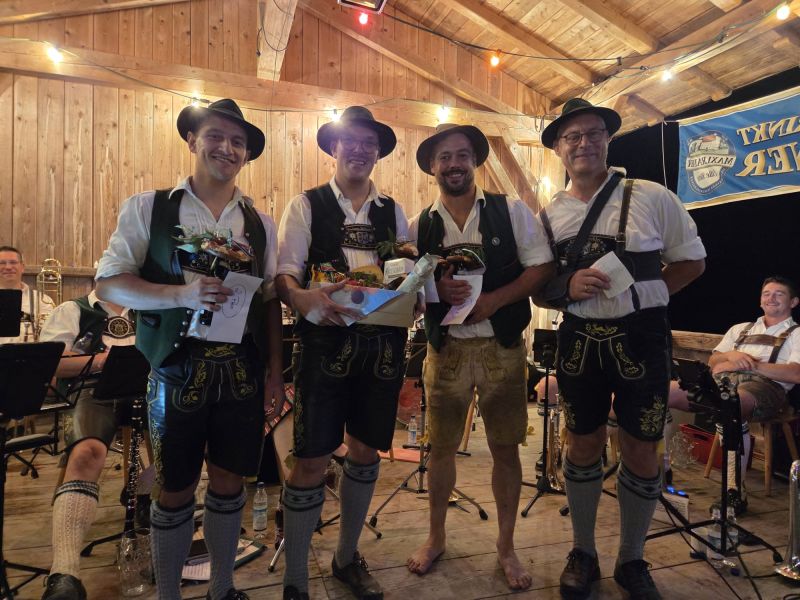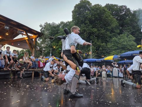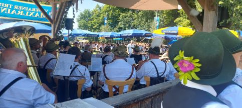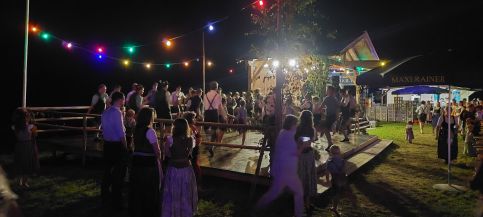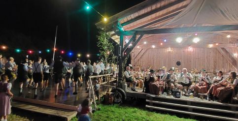 Los ging es am Samstag. Ab 19.00 Uhr spielte die „Brandseckmusi“ auf und es wurde ein zünftiges "Woidweinfest". Die jungen Aktiven Trachtler/innen luden zu diesem Abend ein. Auch für die Verpflegung sorgten sie mit Speck und Käseplatten sowie Kässpätzle und servierten auch mit ihren Leiterwägen oder Schubkarren die Getränke an den Tisch. Später hörte man Oberkrainer Musik. Das bekannte Alpenblickquintett löste ab und die Tanzfläche war wieder gefüllt.