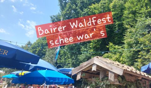 Nach drei Wochen unbeständig kam nun endlich der Sommer zurück. Punkt genau richtig für das Waldfest der Bairer Trachtler. Die Aufbauarbeiten mussten noch um einen Tag verschoben werden, aber dann hats mit dem Wetter geklappt. Viele fleißige Hände machten aus der Wiese am Stoaberg eine Festwiese.