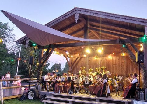 Am Abend spielte die Glonner Musi zur Unterhaltung und zum Tanz auf. Fröhliches Lachen überzog den Festplatz, der mit Besuchern aller Generationen aus nah und fern bis in die frühen Morgenstunden besetzt war. Viele Gäste nahmen auch das Angebot der Felsenbar an, ein immer wieder schöner und „griabiger“ Platz, mit Kerzenlicht, bisserl Stoabruch und etwas erhöht über dem Waldfestplatz gelegen.